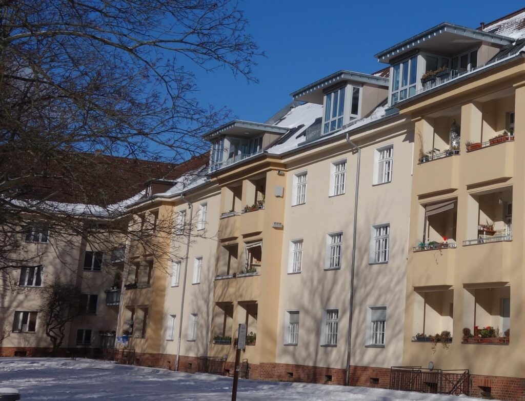 Die Anlage, bestehend aus 3- und 4-geschossigen Gebäuden aus den 1930er Jahren, wird um insgesamt 67 neue Wohnungen erweitert. In einem ersten Bauabschnitt wurden 13 Wohnungen realisiert. Die in der Folge von Kriegszerstörung wiedererrichtete Dachkonstruktion musste aufgrund statischer Anforderungen komplett erneuert werden.