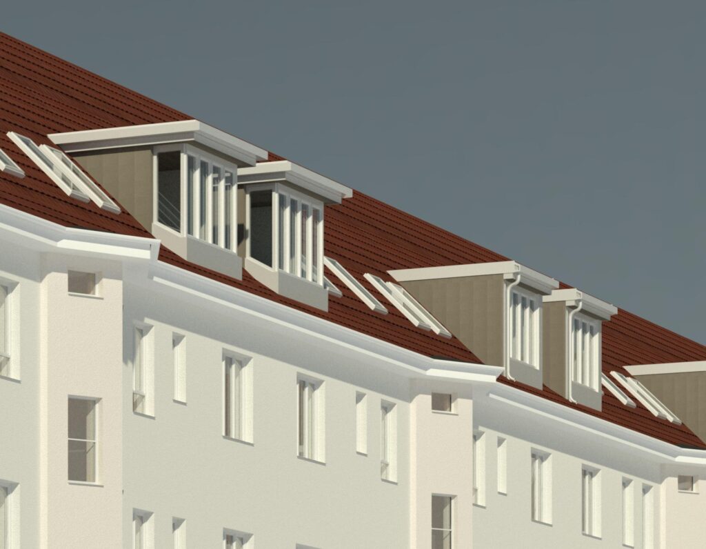 67 neuen Wohneinheiten in den Dachgeschossen auf
