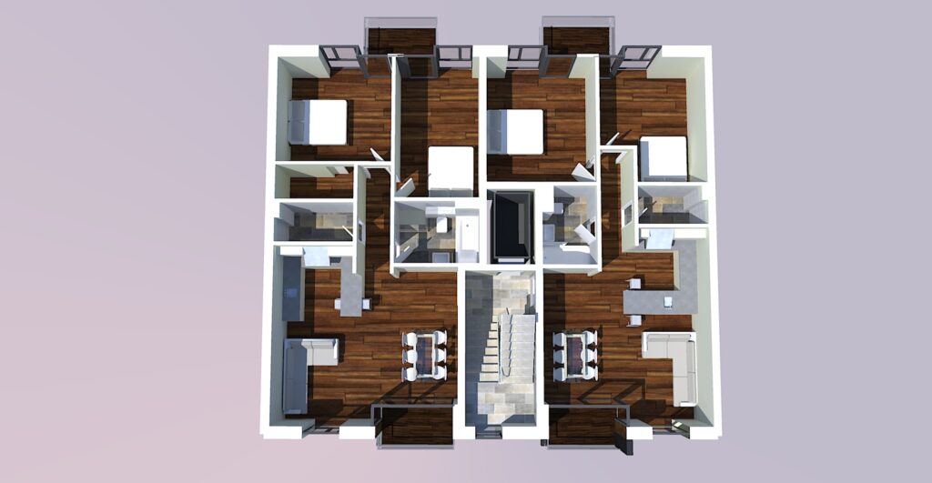 Die raumtrennenden Wände innerhalb der Wohnungen sind nichttragend, wodurch eine hohe Flexibilität bei der Anpassung der Grundrisse an die Anforderungen und Wünsche der späteren Bewohnerinnen und Bewohner erreicht wurde.